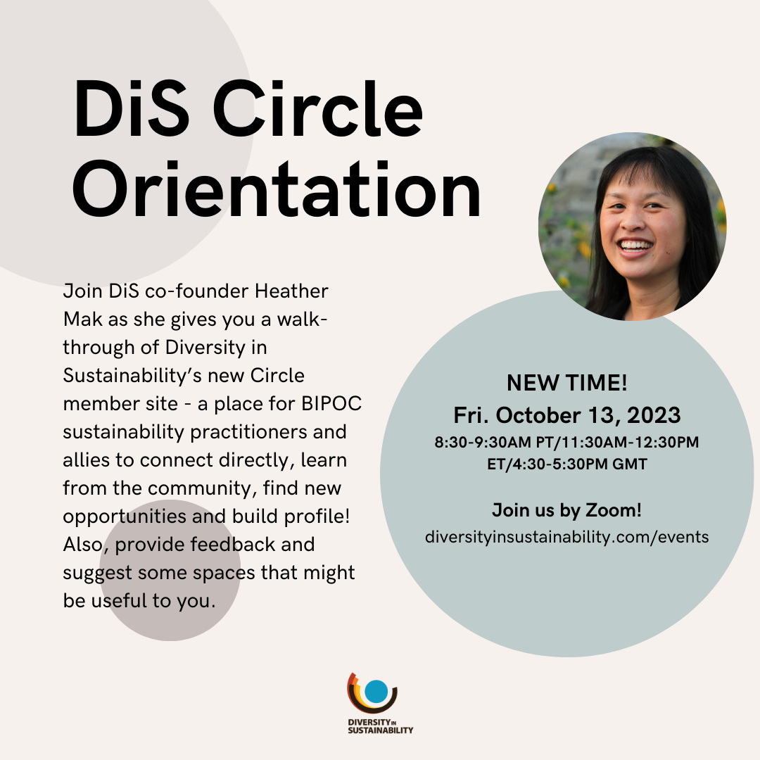 Join DiS co-founder Heather Mak as she gives you a walk-through of Diversity in Sustainability’s new Circle member site - a place for BIPOC sustainability practitioners and allies to connect directly, learn from the community, find new opportunities and build profile! Also, provide feedback and suggest some spaces that might be useful to you.