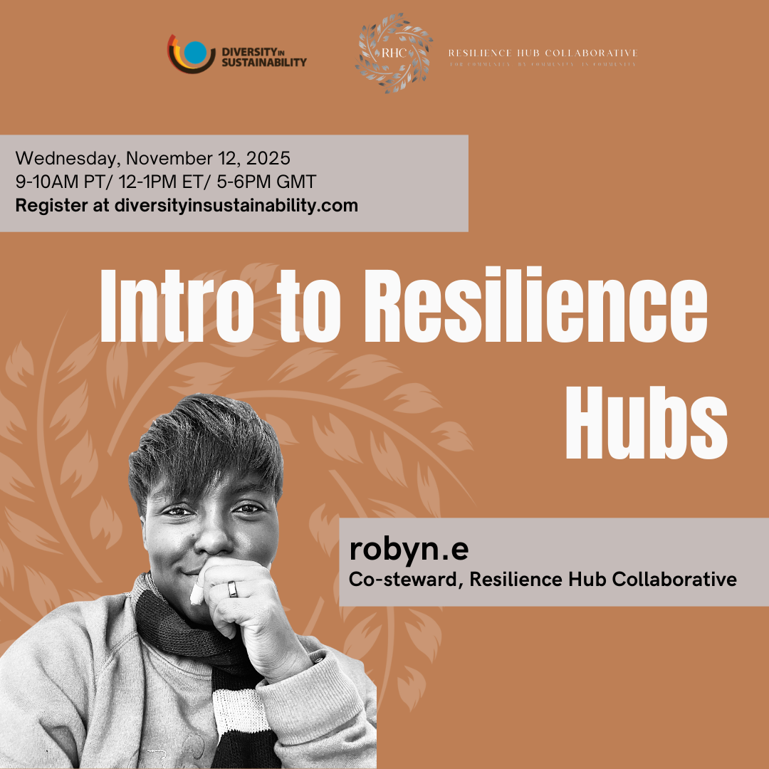 You won’t want to miss this! robyn.e will preview the Resilience Hub Academy--an offering by the Resilience Hub Collaborative (RHC). The Resilience Hub Academy is a 3-month training program for Community-Based Organizations (CBOs), Academics, Non-profits and institutional partners, government practitioners and consultancies, to develop the skills to plan, design and implement resilience hubs. The academy also connects participants with content experts.